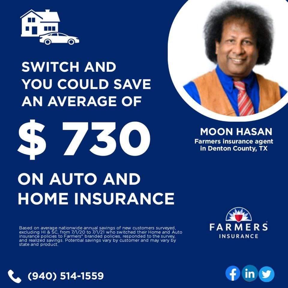 I switched to Farmers Insurance through Moon Hasan after being with another provider for years. The difference in service was immediate — Moon was responsive, honest, and got me better coverage for a lower rate. I appreciate how easy he made the whole process.